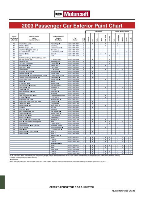 2003 Passenger Car Exterior Paint Chart Gdmjoe