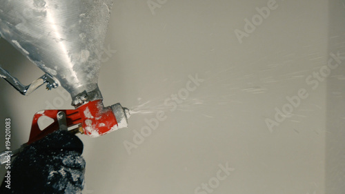 Worker Painting Wall With Spray Gun In White Color Man Painting A