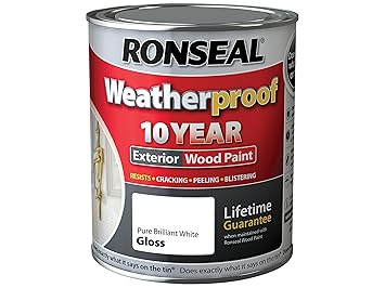 Ronseal exterior wood paint. Ronseals 10 year weatherproof wood paint delivers lasting protection against the elements. Weatherproof in just 1 hour and guaranteed for 10 years. If your old paint isnt flaking and is still in a good condition use 240 grit sandpaper and just lightly sand the surface.